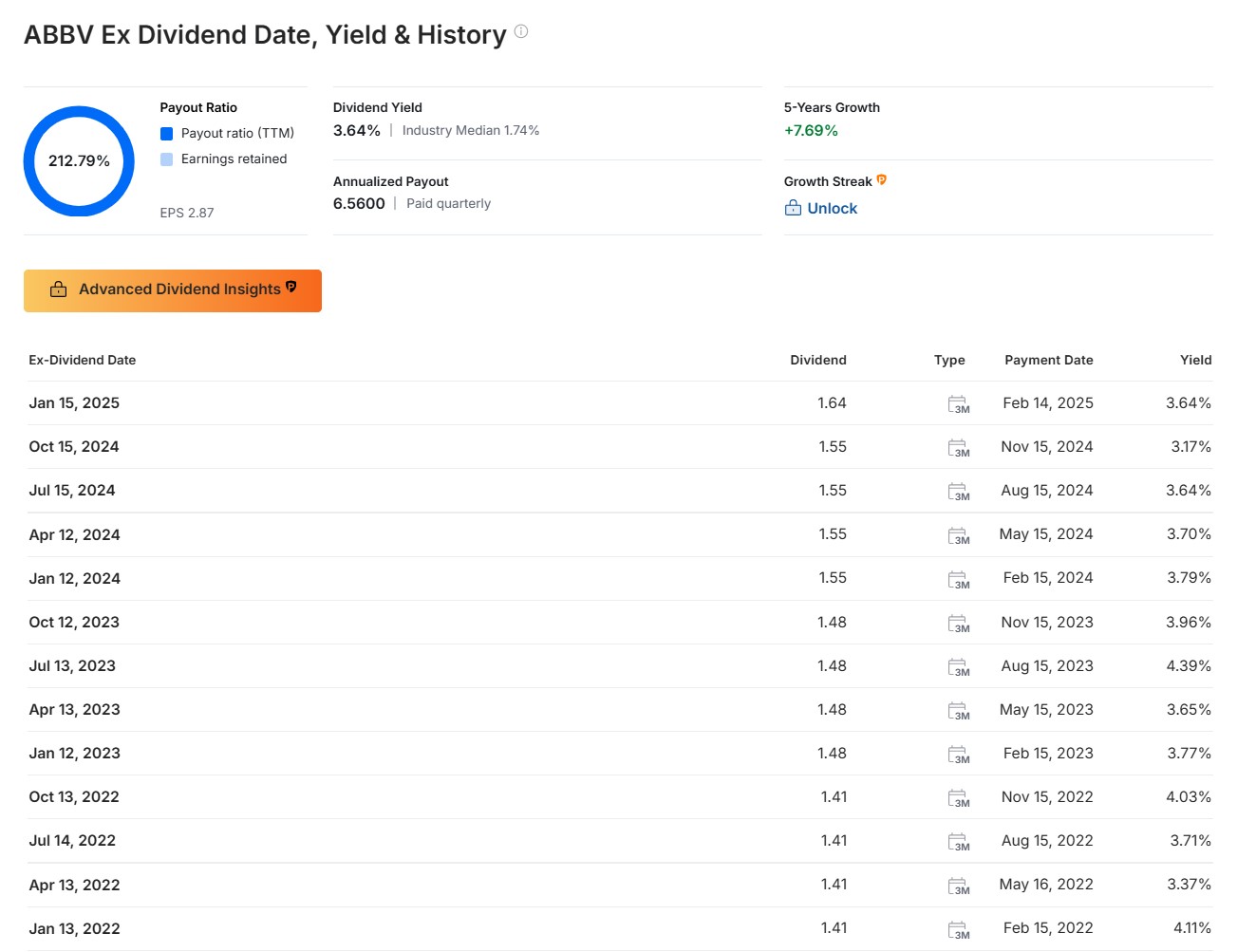 - 과거 몇 년 동안 애브비는 연평균 7.69%의 배당금 성장률을 기록했습니다.