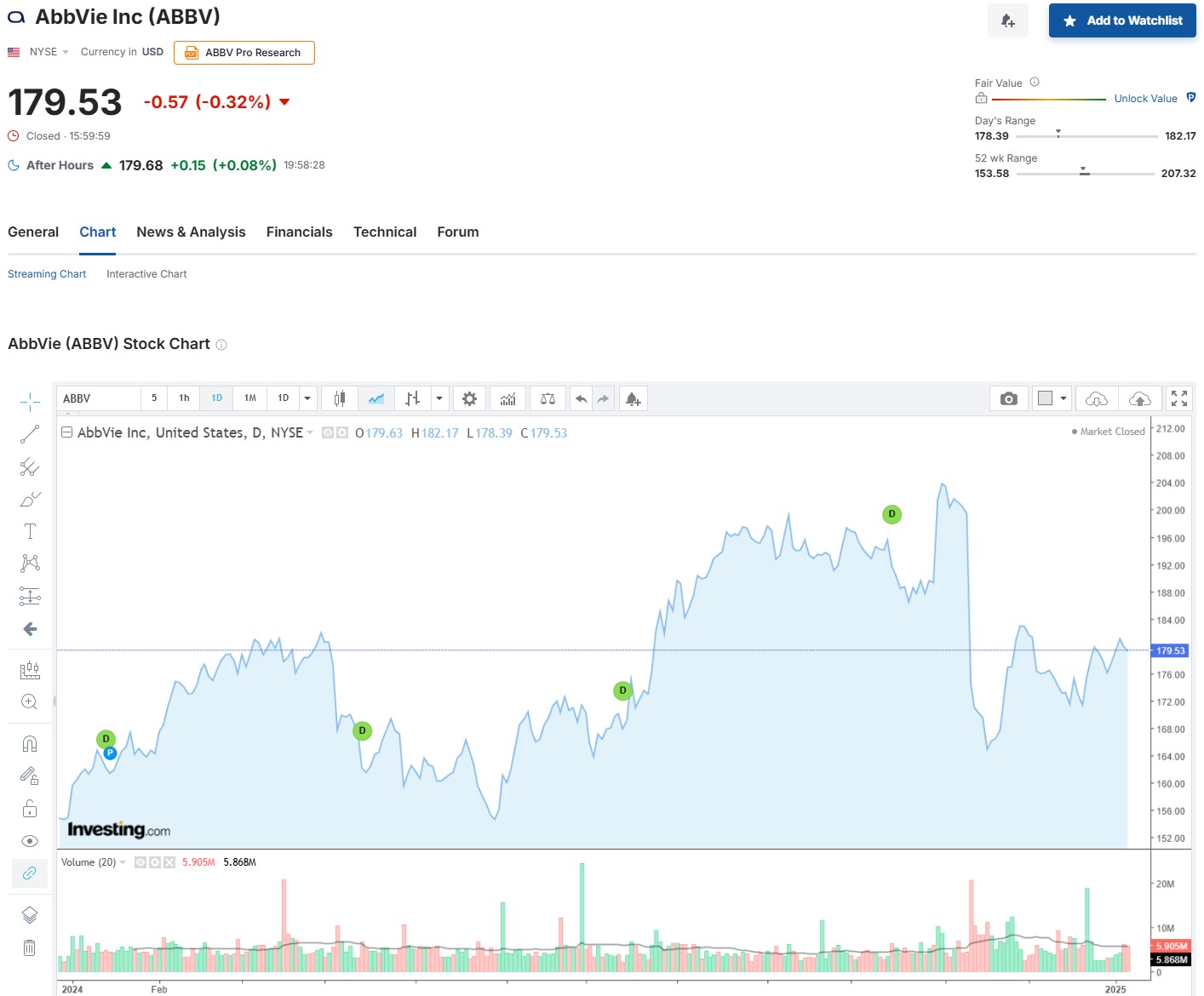 2. 애브비(AbbVie) 주가 현황