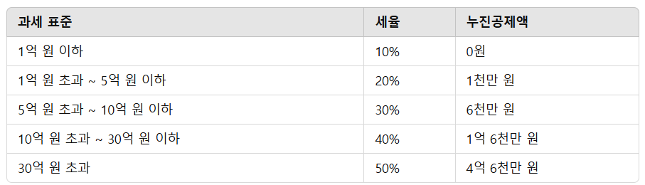 증여세는 위의 면세 한도를 초과하는 금액에 대해 과세됩니다.