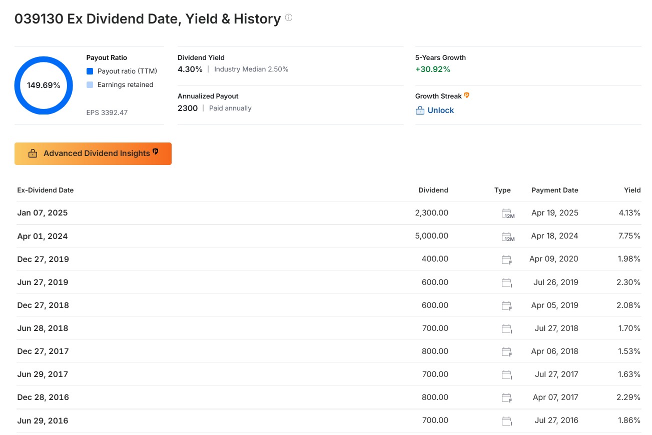 - 2025년 기준 배당금은 2,300원으로 지급 예정. 이는 4.30%의 배당 수익률을 기록하며 업계 평균(2.5%) 보다 높은 수준.