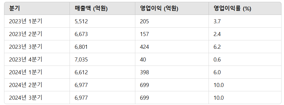 2023년 이후 실적을 살펴보면, 매출과 영업이익 모두 꾸준한 상승세를 보이고 있습니다. 여기에는 국내 건설경기 회복과 스마트 기술이 결합된 제품 수요 증가가 한몫했습니다.