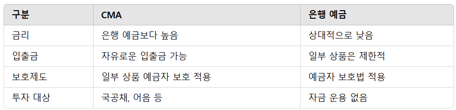 CMA와 은행 예금의 차이점