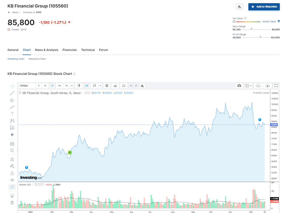 2-1. KB금융 최근 1년간 주가 흐름