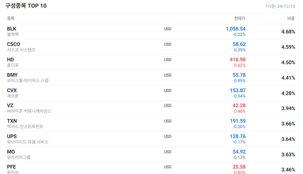 이 ETF는 100여 개의 기업으로 포트폴리오가 구성되어 있으며, 주로 배당률이 높고 재무 상태가 탄탄한 기업에 초점이 맞춰져 있습니다.